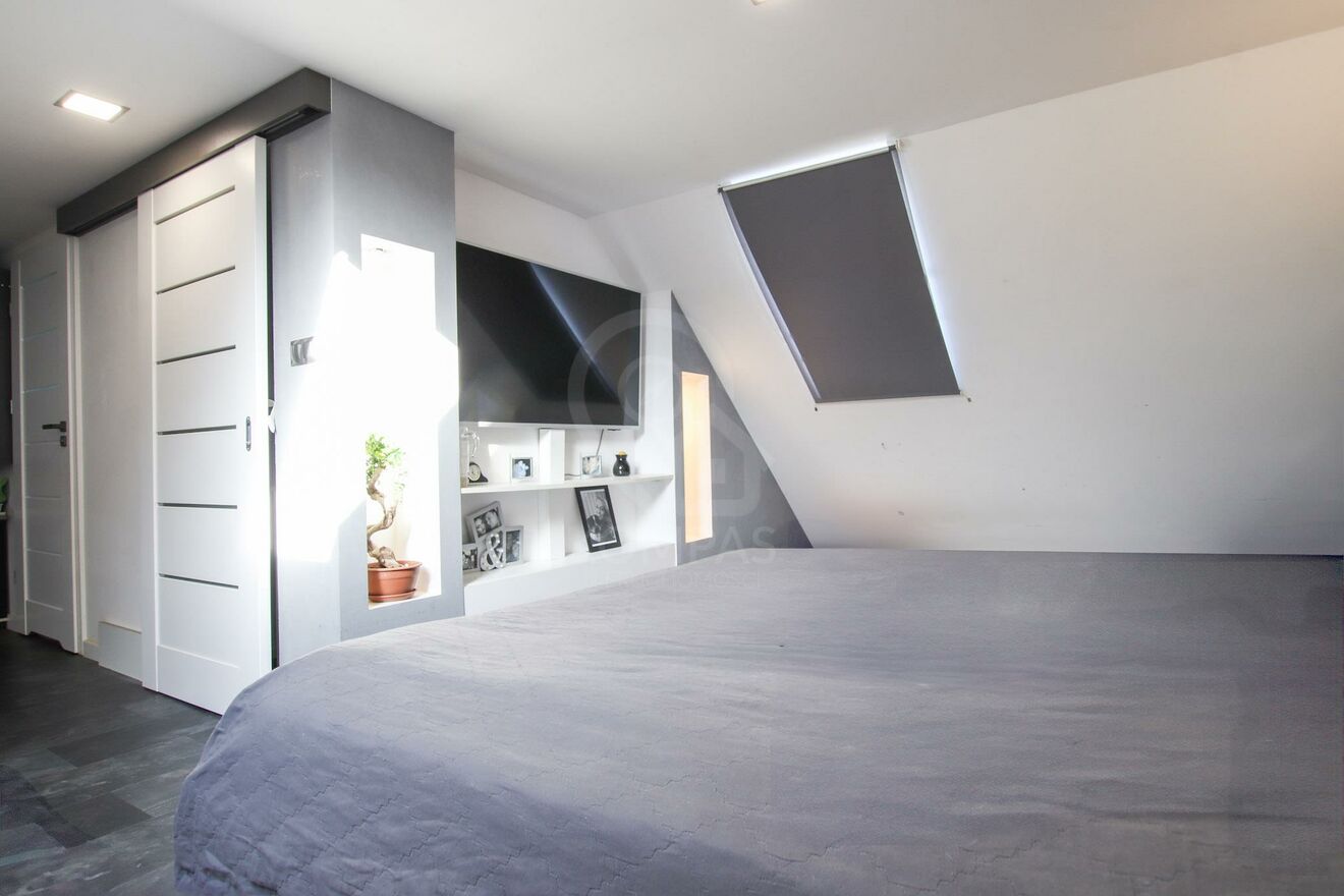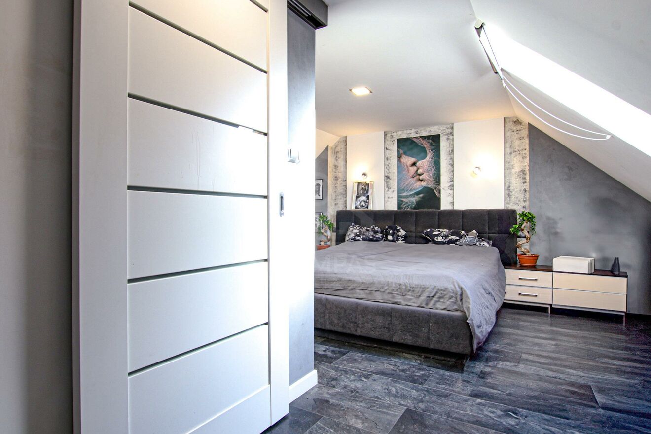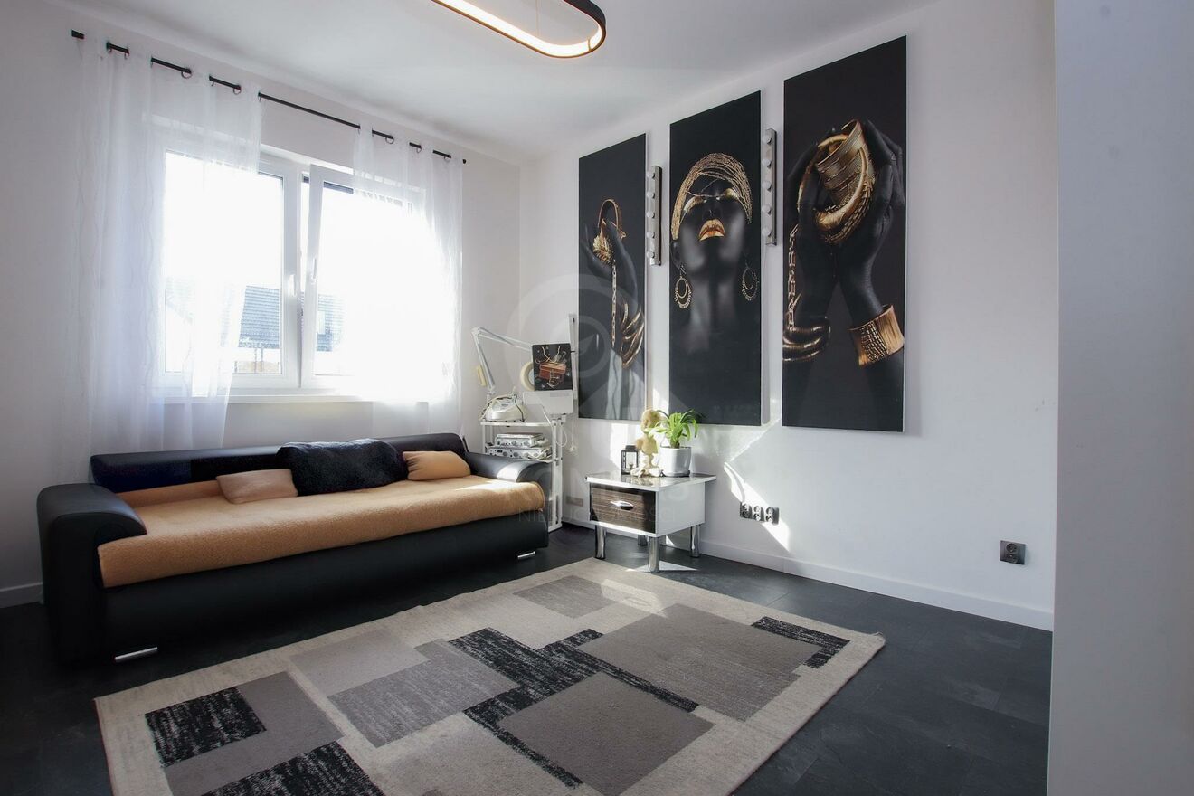 - Liczba pokoi: 4 (3 sypialnie, salon, strefa wypoczynku i garderoba na drugim poziomie)