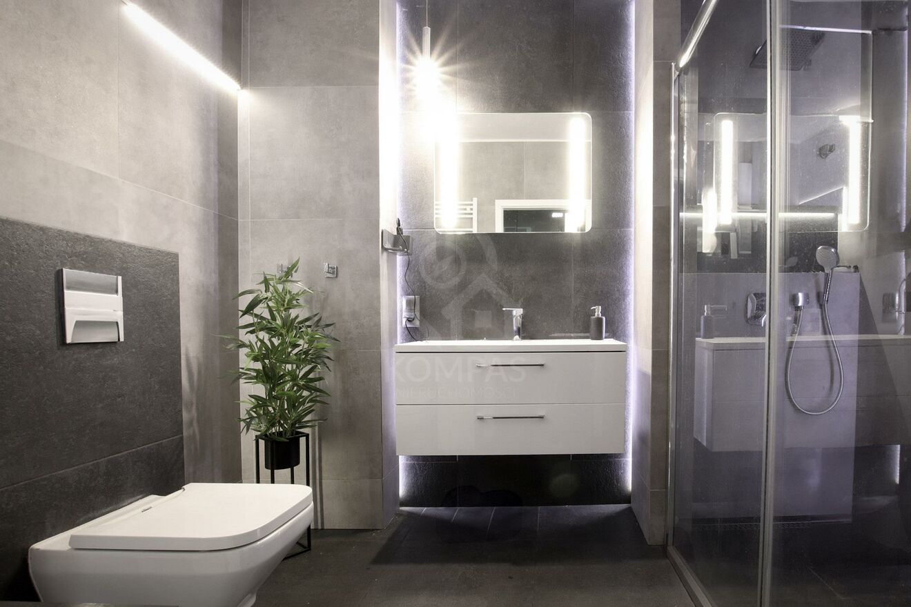 Mieszkanie zostało wykończone w wysokim standardzie. Kuchnia najwyższej klasy, łazienki w nowoczesnym stylu, starannie dobrane materiały i dekoracje. Wnętrza są funkcjonalne, komfortowe i niemal jak dom w zabudowie szeregowej. Dźwiękowa i wizualna integracja z technologiami audio w łazience, wysokiej klasy meble i elementy wyposażenia sprawiają, że jest to idealna propozycja dla osób ceniących jakość i wygodę.