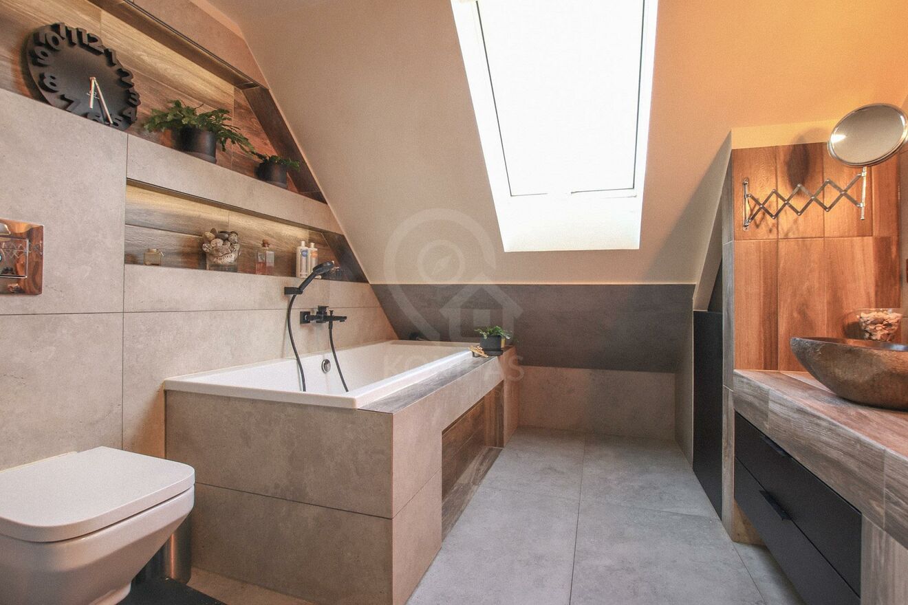 - Liczba łazienek: 2 (w tym jedna z wanną, druga z kabiną walk-in, obie w wysokim standardzie)
