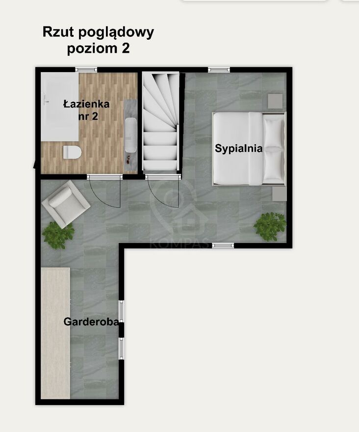- Powierzchnia na drugim poziomie: ok. 42 m