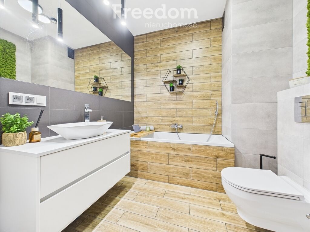 Na parterze znajduje się duża, elegancka łazienka z wanną w