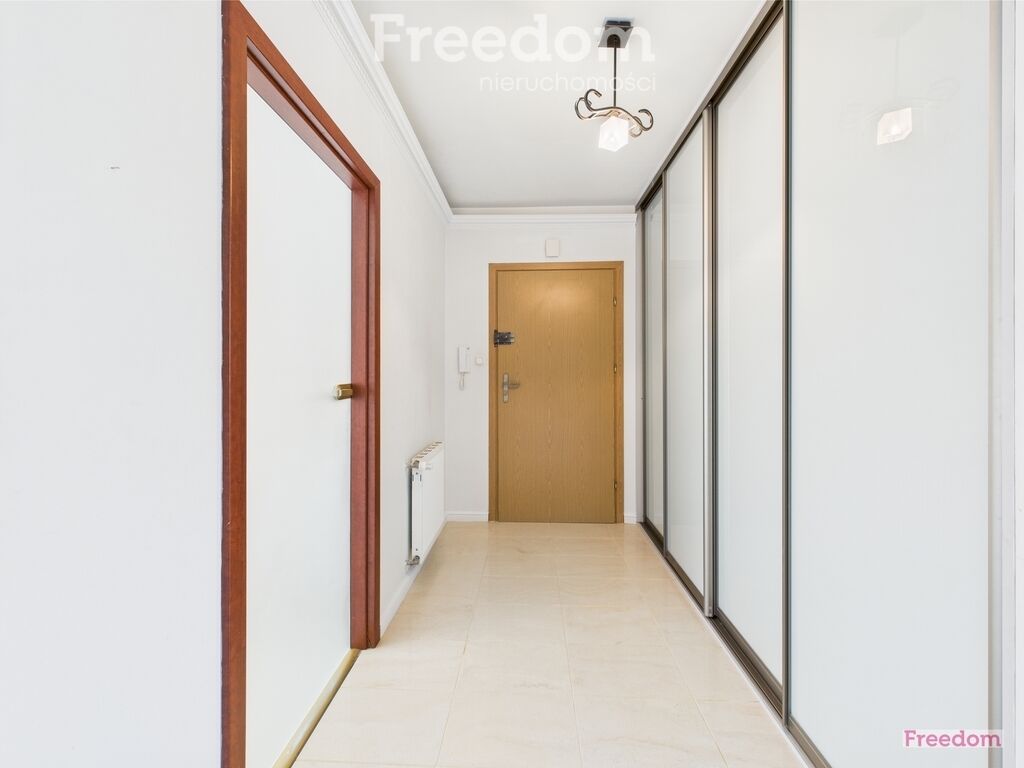 Korytarz z duża zabudowaną szafą połączony z salonem, łazienką